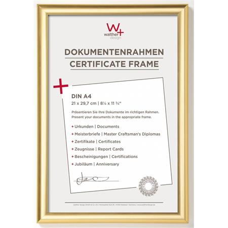 Képkeret, műanyag, 21x29,7 cm, A4, "Walther Trendstyle", arany