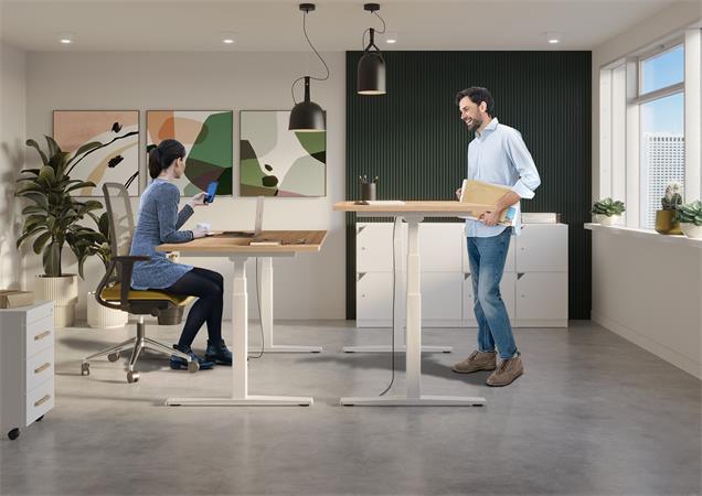 Ergonomikus íróasztal elektromos magasságállítással egy gomb megnyomásának segítségével.