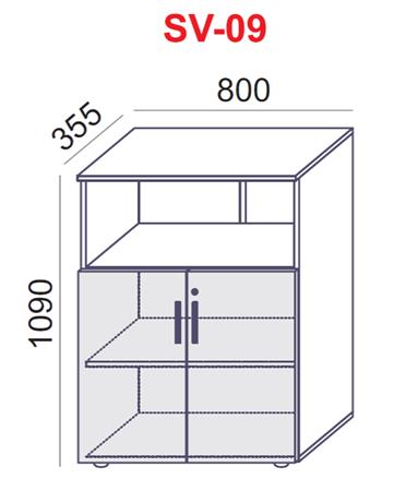 3 rendező magas, kombinált szekrény, ajtós és nyitott polcos részekkel