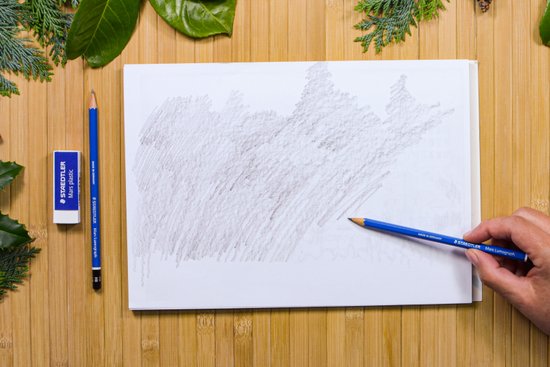 2. Pontosan helyezzük a sablont (előlappal felfelé) az akvarellpapírra. Ezután kemény ceruzával rajzoljuk körbe a motívumot, hogy átkerüljön a papírra. Mielőtt eltávolítjuk a sablont, emeljük fel a sarkoknál, hogy meggyőződjünk, minden vonal átkerült.