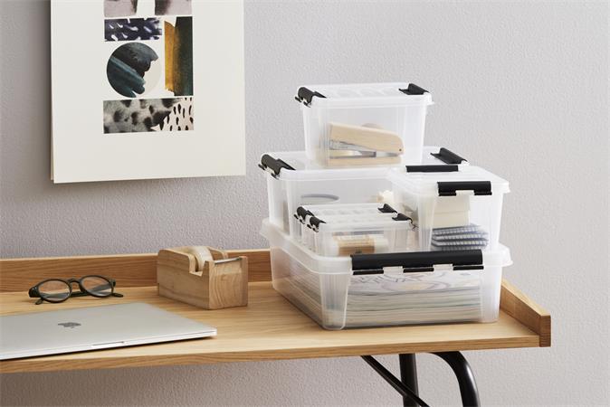 Műanyag tárolódoboz, 8 liter, fekete fogantyúkkal, SMARTSTORE "Classic 14", átlátszó