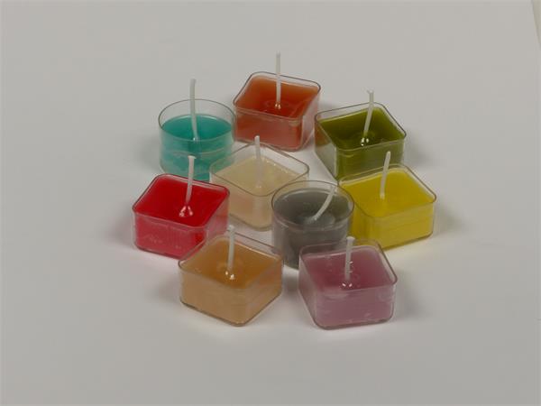 -a vízfürdőben felolvasztott viaszba vagy gyertyazselébe keverjük el egyenletesen a színezőt