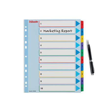 Regiszter, laminált karton, A4 Maxi, 1-10, újraírható, ESSELTE