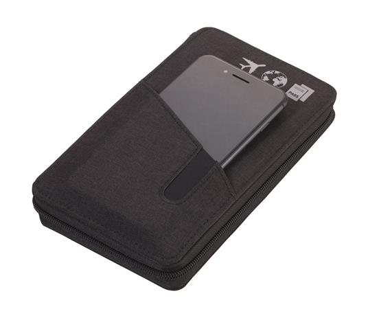 Dokumentumtároló, utazáshoz, RFID védelemmel, golyóstollal, TROIKA "Cargosafe", sötétszürke