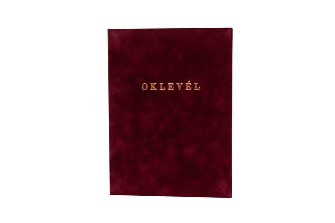 Oklevéltartó, A4, exkluzív, plüss, aranyozva, bordó