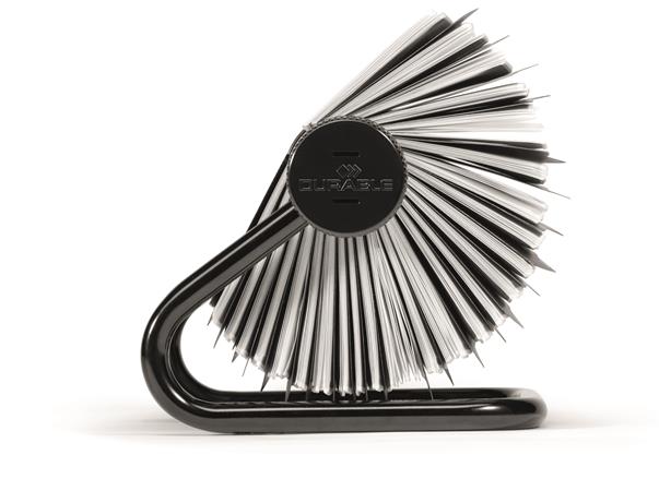 Névjegykártyatartó, fém, 400 db-os, forgatható, fekvő, DURABLE, "VISIFIX®", fekete