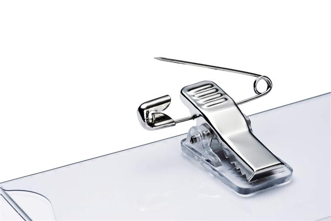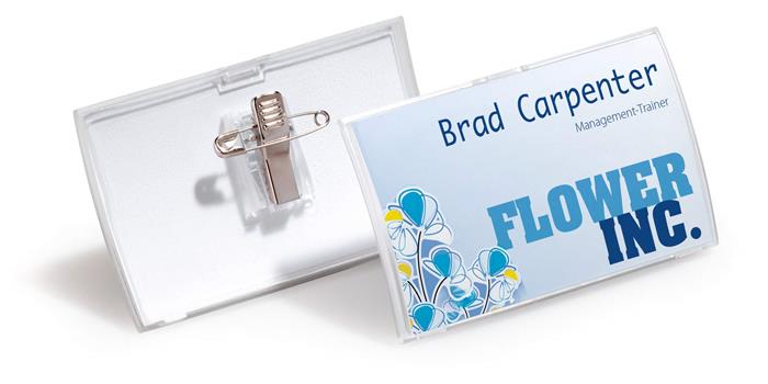 Névkitűző, csíptetővel és tűvel, PP, 54x90 mm, DURABLE "CLICK FOLD"