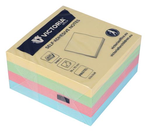 Öntapadó jegyzettömb, 75x75 mm, 400 lap, VICTORIA OFFICE, pasztell
