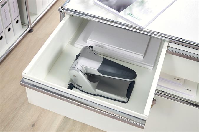 Lyukasztó, nagyteljesítményű, kétlyukú, 65 lap, LEITZ "5180", ezüst