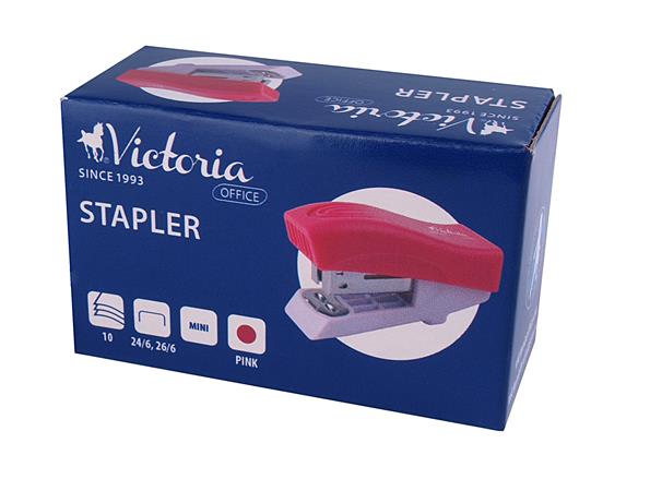 Tűzőgép, 24/6, 26/6, 12 lap, VICTORIA OFFICE, "Mini", rózsaszínAlapítvány támogatás 1 Ft