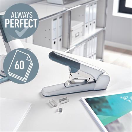Tűzőgép, nagyteljesítményű, 25/10, 60 lap, LEITZ "5552", ezüst