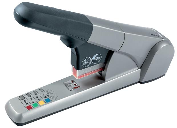 Tűzőgép, nagyteljesítményű, 80 lap, LEITZ "5551", ezüst