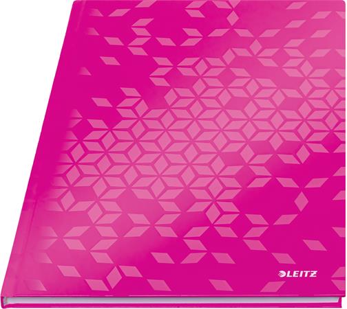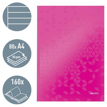 Beíró, A4, vonalas, 80 lap, keményfedeles, LEITZ "Wow", rózsaszín