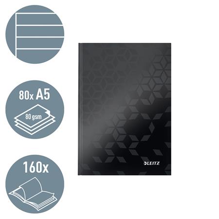 Beíró, A5, vonalas, 80 lap, keményfedeles, LEITZ "Wow", fekete