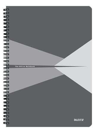 Spirálfüzet, A4, kockás, 90 lap, laminált karton borító, LEITZ "Office", szürke