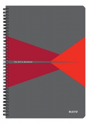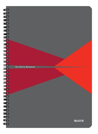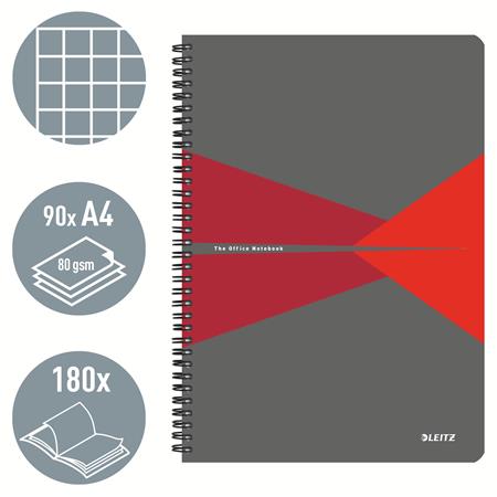 Spirálfüzet, A4, kockás, 90 lap, PP borító, LEITZ "Office", szürke-piros