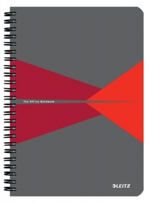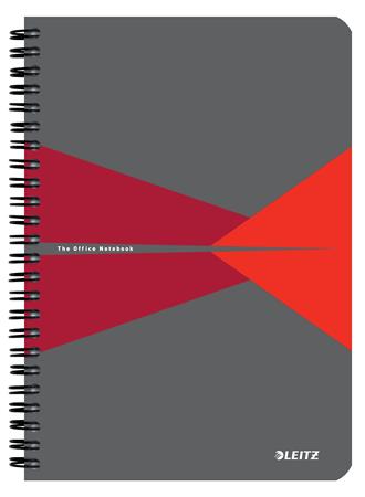 Spirálfüzet, A5, vonalas, 90 lap, PP borító, LEITZ "Office", szürke-piros