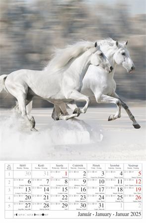 -naptár rész: magyar, angol, német nyelven, magyar  ünnepek  és névnapokkal, napkelte, napnyugta és holdállás  feltüntetésével