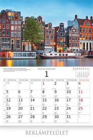 -naptár rész: magyar, angol, német nyelven, magyar  ünnepek feltüntetésével