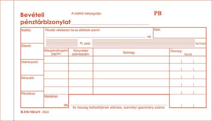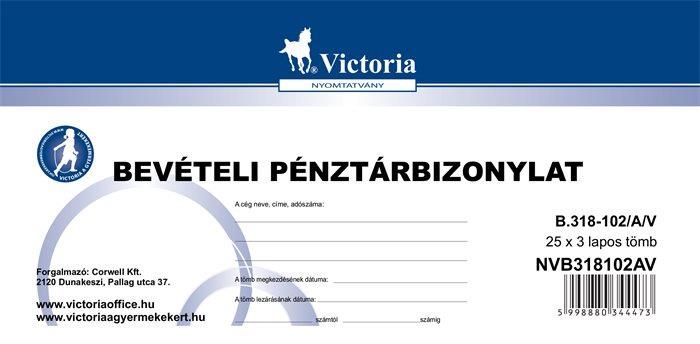 Nyomtatvány, bevételi pénztárbizonylat, 25x3, VICTORIA "B.318-102", 1 tömb
