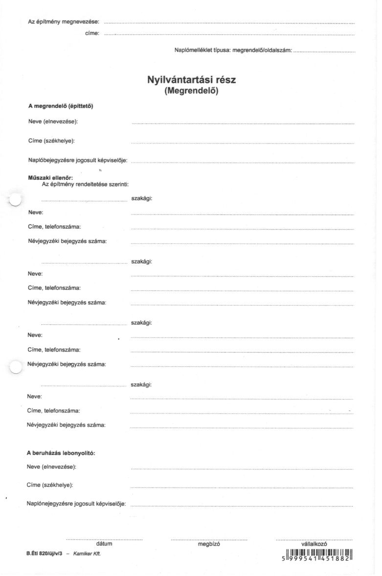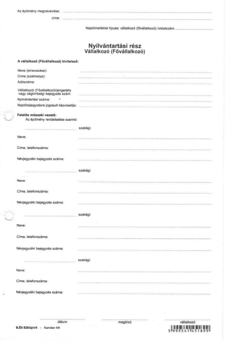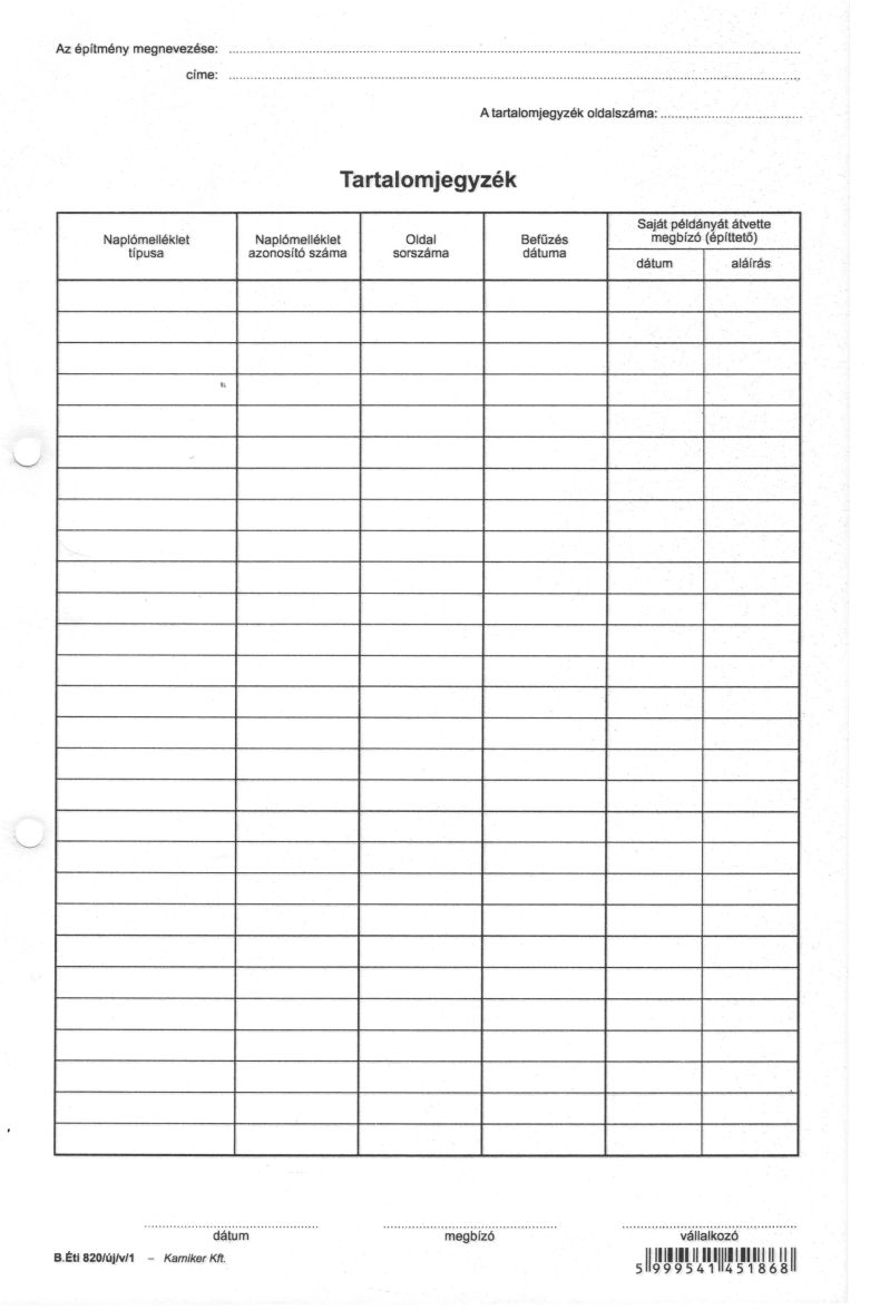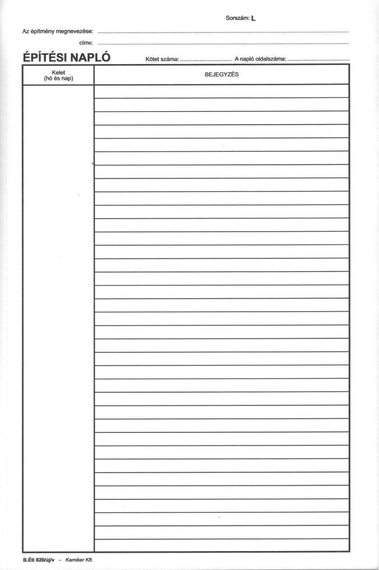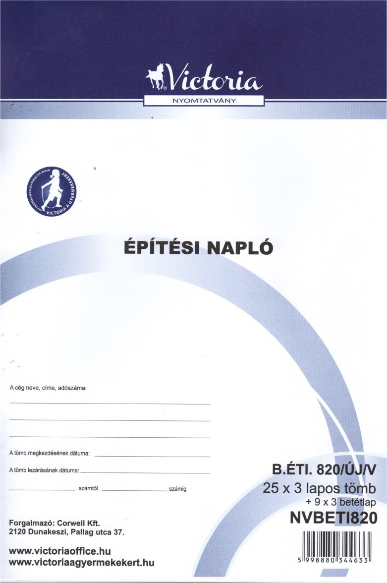 Nyomtatvány, építési napló, 25x3 + 9x3 betétlap, A4, VICTORIA "B.ÉTI.820", 1 tömb
