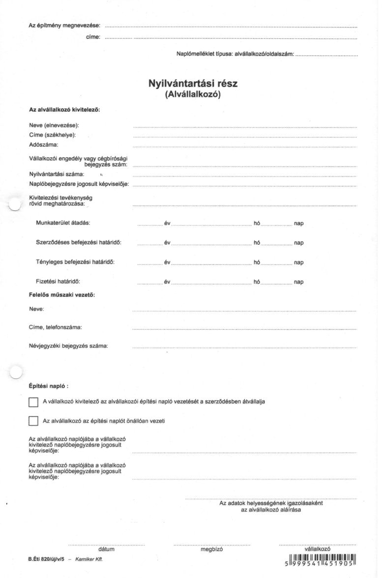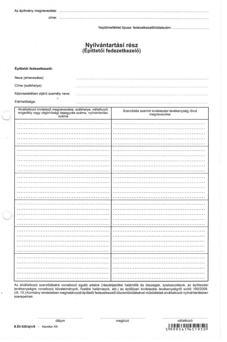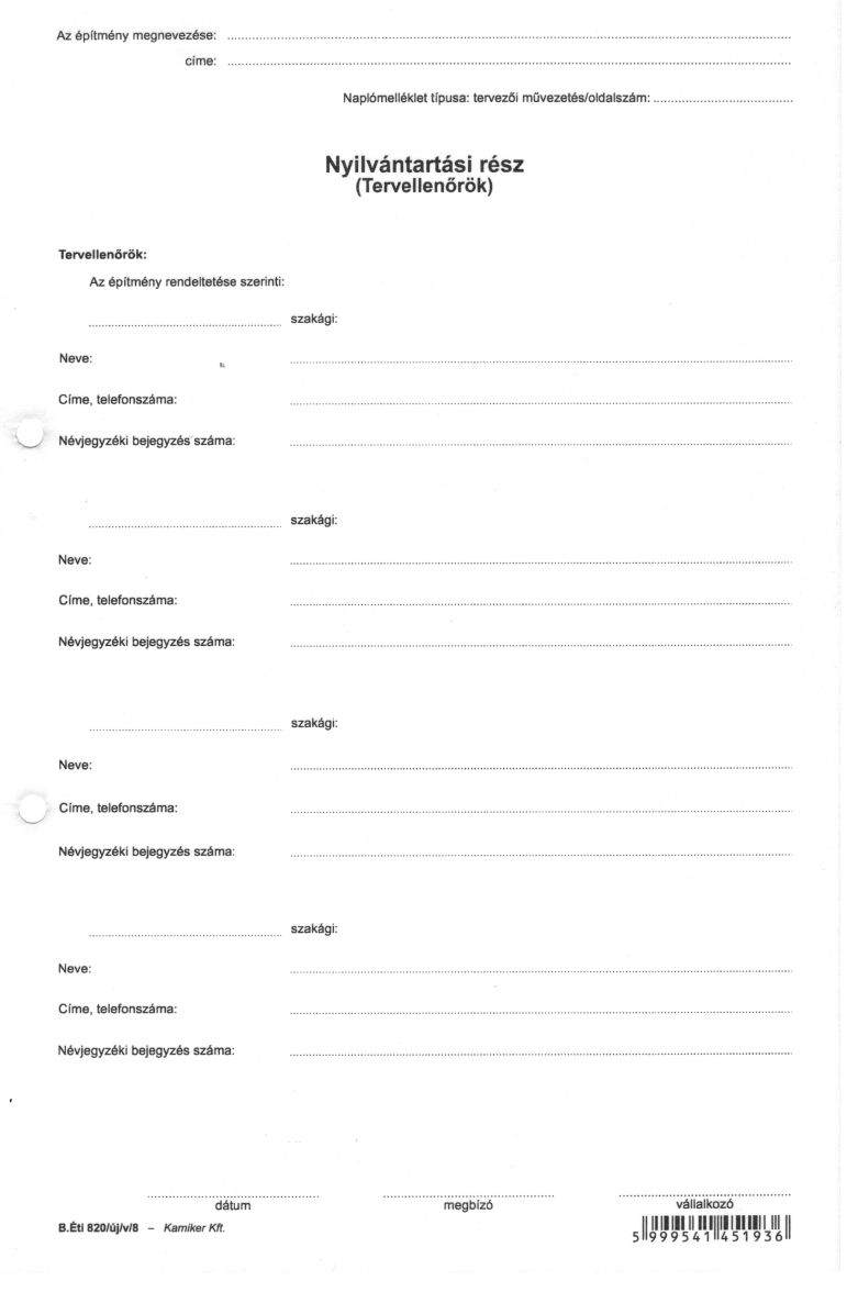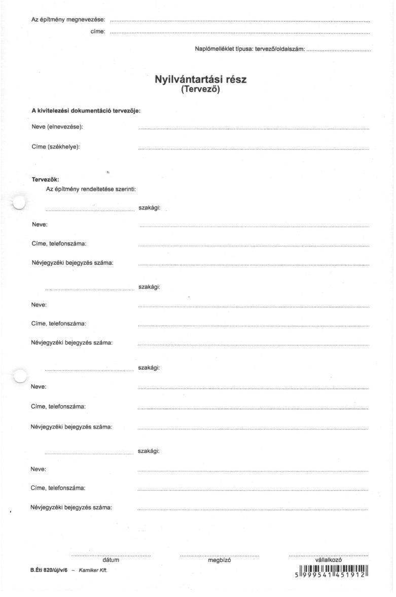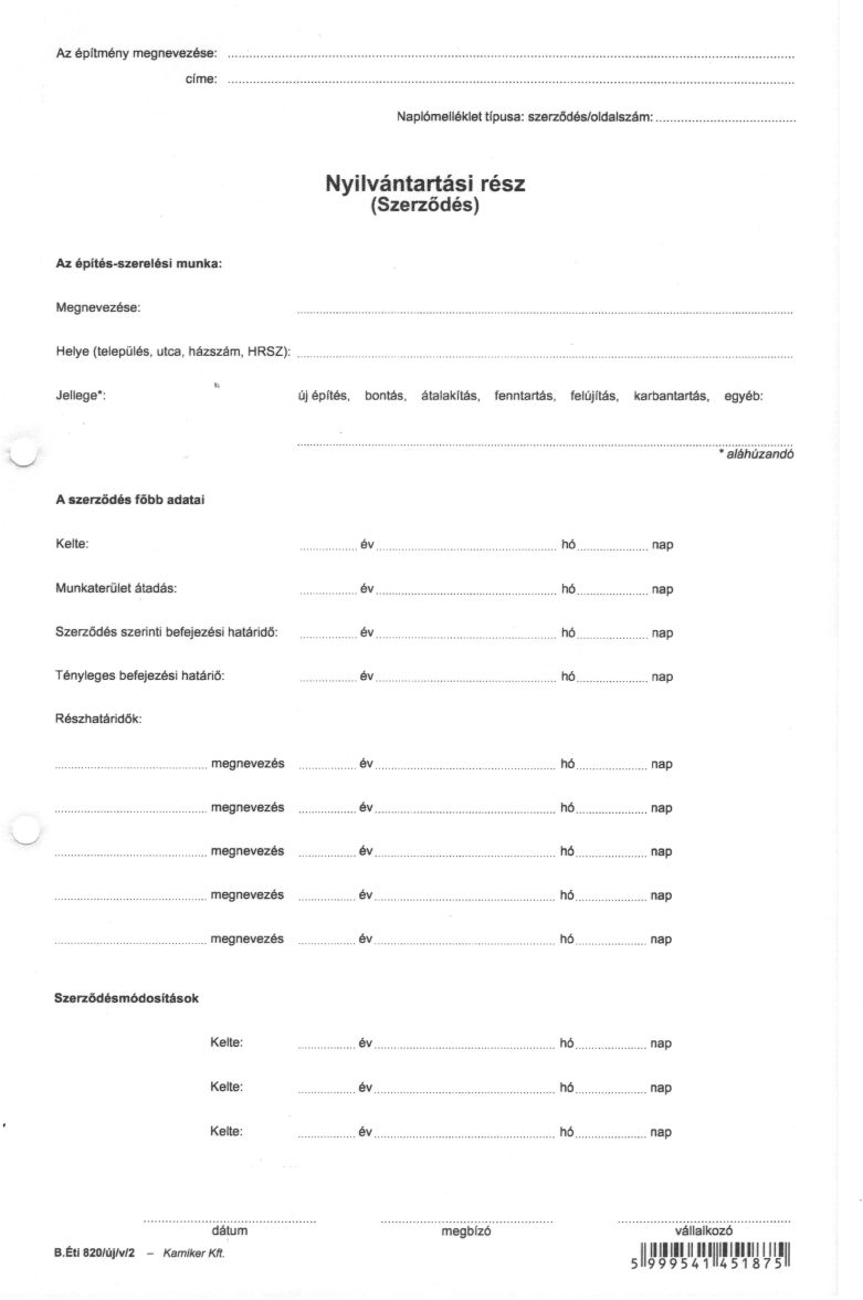 Nyomtatvány, építési napló, 25x3 + 9x3 betétlap, A4, VICTORIA "B.ÉTI.820", 1 tömb