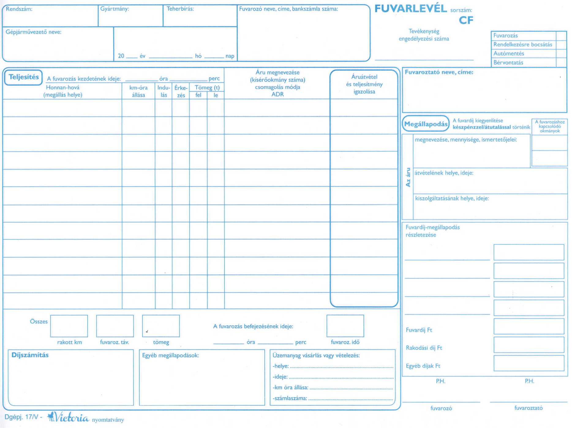 Nyomtatvány, fuvarlevél, 50x3, A4, fekvő, VICTORIA "D.GÉPJ.17", 1 tömb