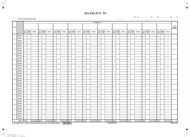 Nyomtatvány, jelenléti ív, 1 hónap-10 fő, A3, VICTORIA "C.60-3", 1 lap