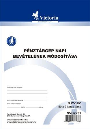 Nyomtatvány, pénztárgép napi bevételének módosító tételei, 25x2, A5, VICTORIA "B.22-31", 1 tömb