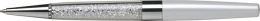 Golyóstoll, ezüst, alul fehér SWAROVSKI® kristállyal töltve, 14cm, ART CRYSTELLA®