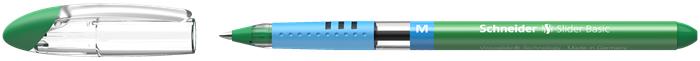Golyóstoll, 0,5 mm, kupakos, SCHNEIDER "Slider Basic M", zöld