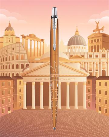 KezdőlapIrodaszerekÍrószerekGolyóstollakGolyóstoll, 0,7 mm, ezüst színű klip, mintás tolltest, PARKER, "Royal Jotter Róma", kék