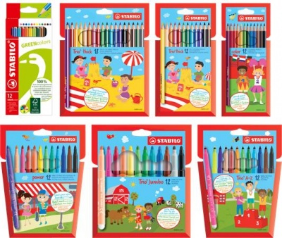 -TST20312 Színes ceruza készlet, háromszögletű, vastag, STABILO "Trio thick", 12 különböző szín