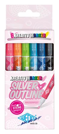 KezdőlapIrodaszerekÍrószerekMarkerekFilctoll készlet, 1-2 mm, metál ezüst, WEDO, 6 különböző színű kontúrral