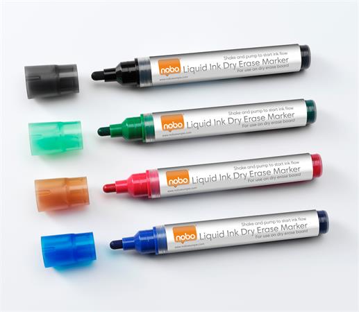 Folyékony szárazon törölhető markerek Nobo szárazon törölhető és flipchart táblákhoz.