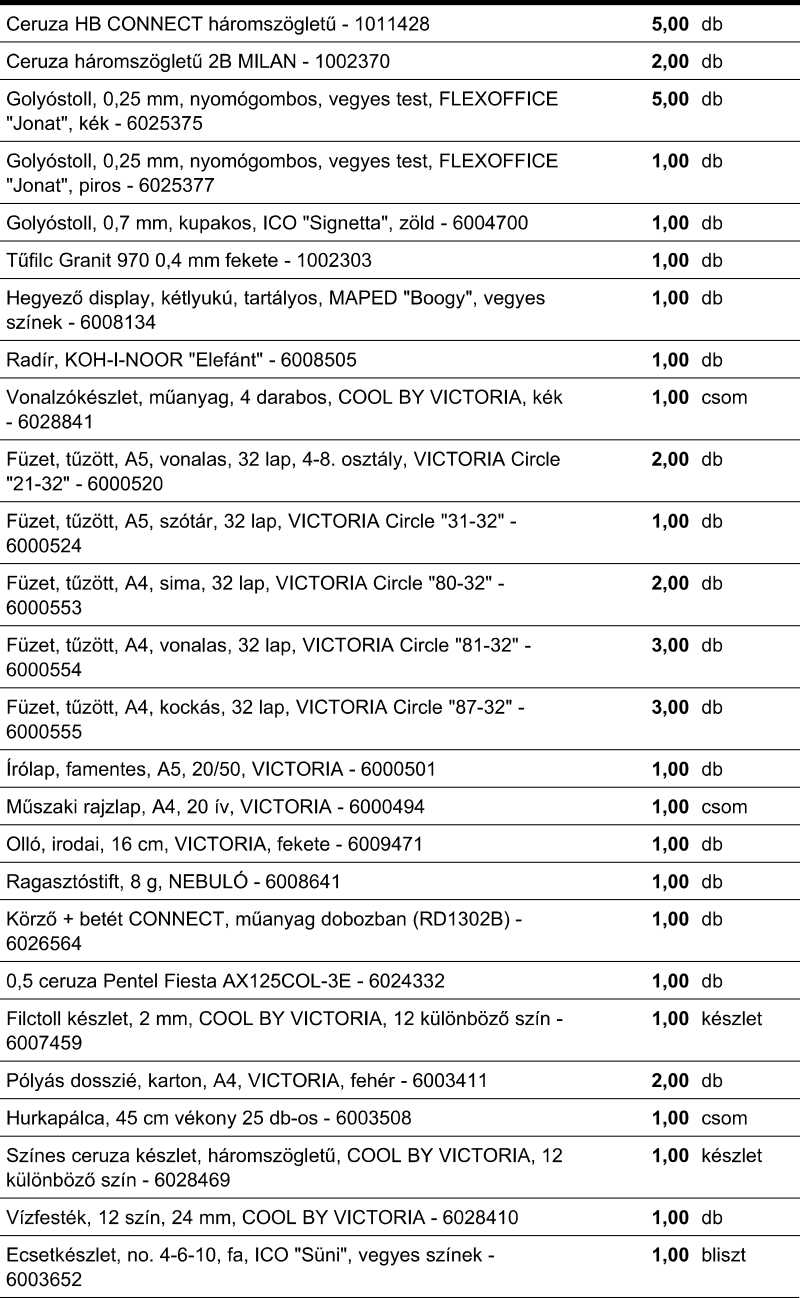KezdőlapIrodaszerekIskolaszerekEgyéb iskolaszerekTanévkezdési csomag 5. osztály (ingyenes házhozszállítással)