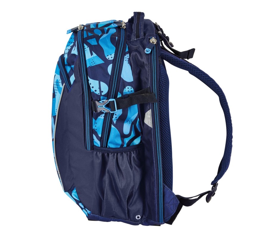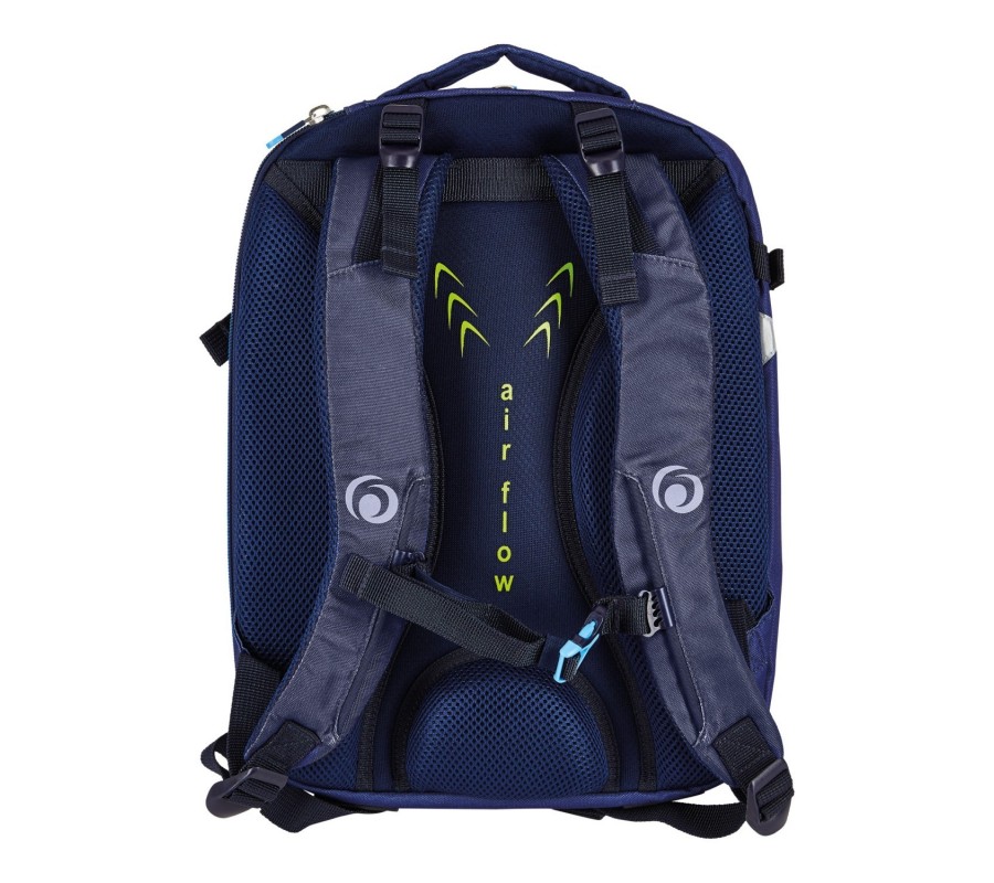 Ultimate ergonomikus iskolatáska, üres, méret: 41x31x22 cm, súly: 650g, űrtartalom: 24 liter, alapanyag: poliészter, impregnált réteggel az eső és a nedvesség ellen. Különlegességek: puha táskatest, jól szellőző, ergonomikus hátkialakítás, akadálymentesen állítható vállpántok, állítható mellkaspánt, műanyag lábak, praktikus fogófül, cipzárral zárható, fényvisszaverő rátétek. Külseje 80%-ban újrahasznosított PET palackokból készült.