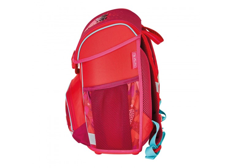 Loop ergonomikus iskolatáska, üres, méret: 37x31x22 cm, súly: 950g, űrtartalom: 16 liter, alapanyag: poliészter, impregnált réteggel az eső és a nedvesség ellen. Különlegességek: jól szellőző hátkialakítás, akadálymentesen állítható vállpántok, megerősített alsó panel, praktikus fogófül, klikk-zár, Orafol fényvisszaverő rátétek.