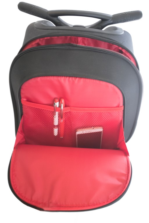 Az első rekesz két kisebb rekesszel és egy hálós zsebbel ami ideális órarendnek, MP3-nak, telefonnak, kulcsoknak és egyebeknek.