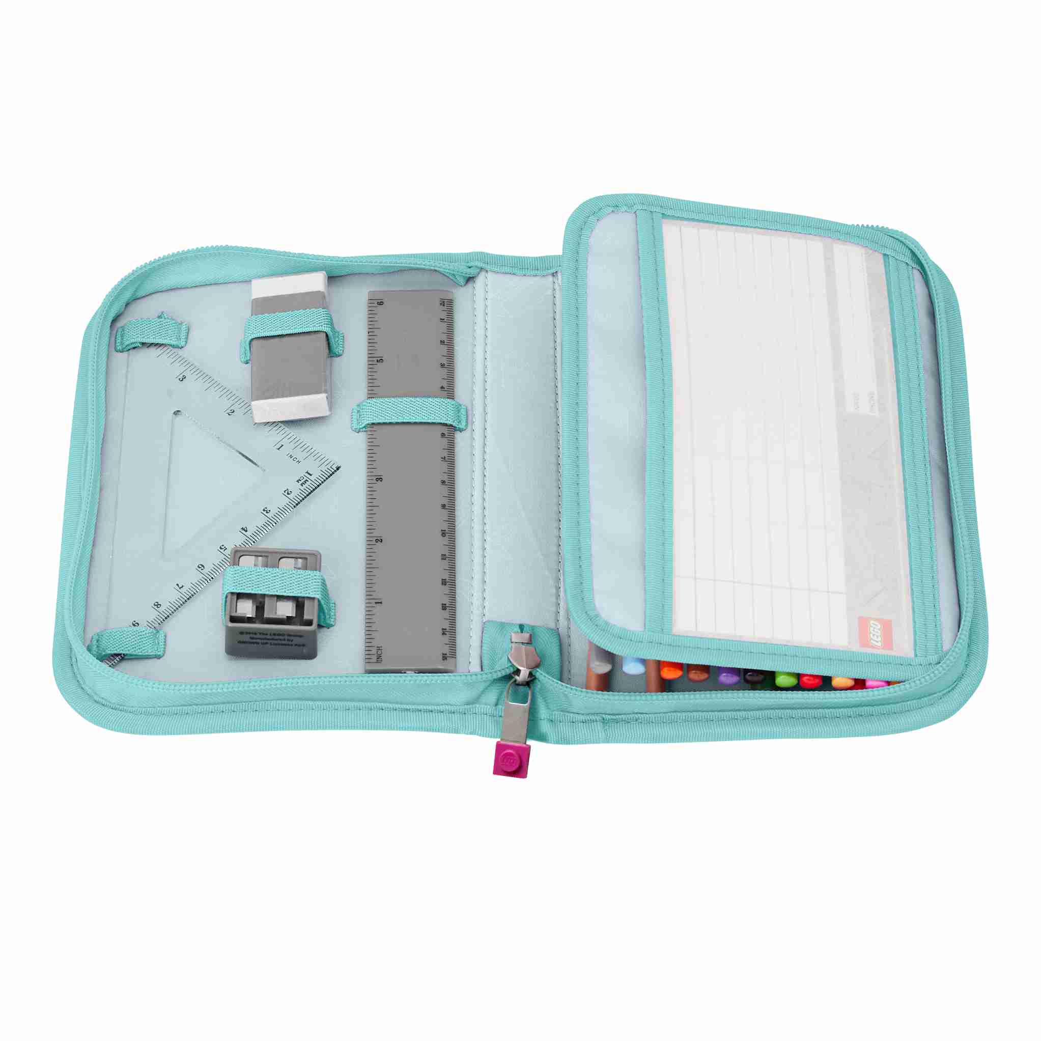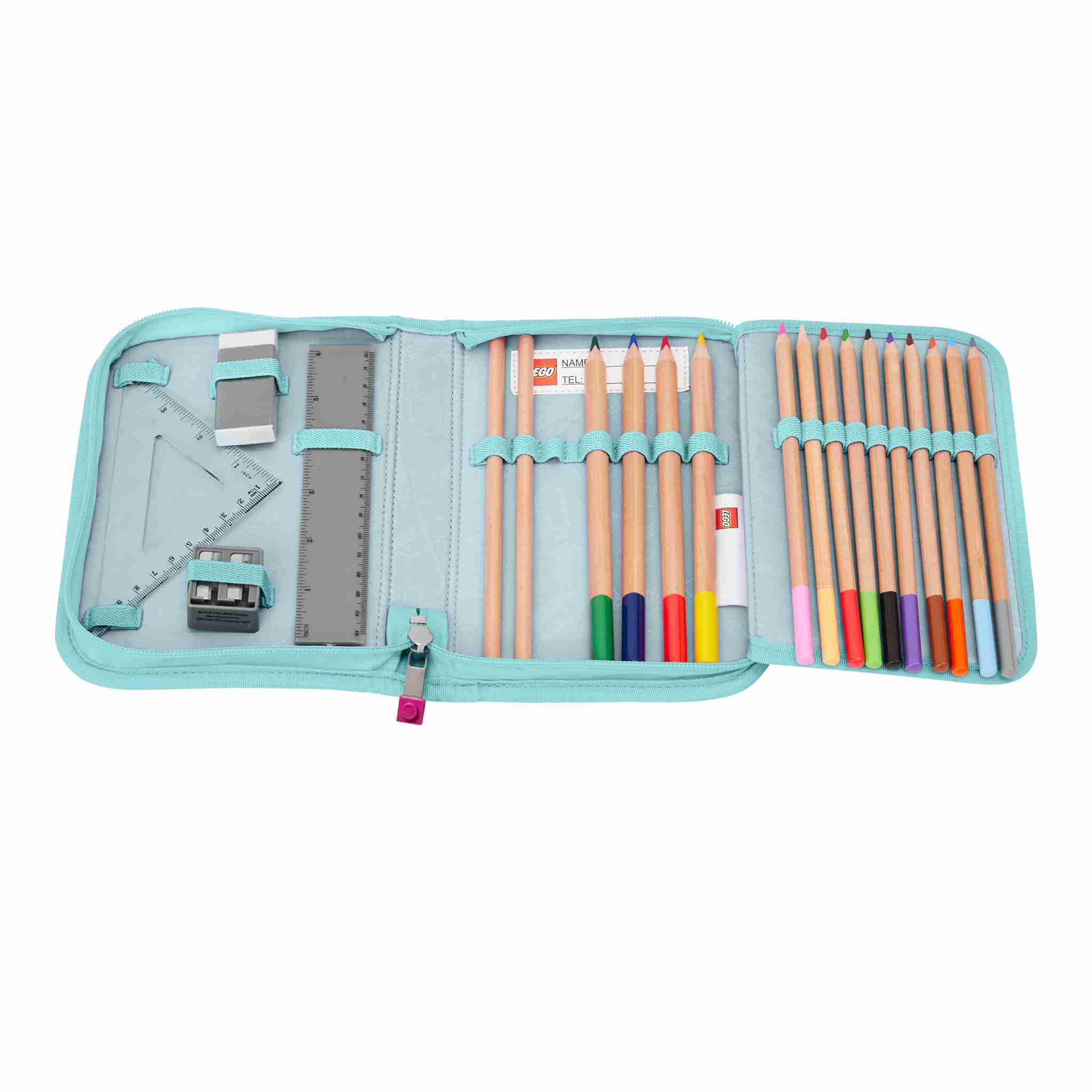 Ez a tolltartó minden szükséges eszközt tartalmaz egy iskolai naphoz. A tolltartó CE tanúsítvánnyal rendelkezik; 2 ceruza, 10 színes ceruza, 4 vastag színes ceruza, radír, ceruzahegyező, vonalzó és háromszög vonalzó található benne. A tolltartó kitölthető órarenddel és belső névtáblával rendelkezik, amely megkönnyíti az azonosítást. Tartós PVC-mentes anyagból készült, és a különböző LEGO® univerzumokból származó népszerű minták széles skálájával kapható. Az első iskolaévekben kötelező darab.