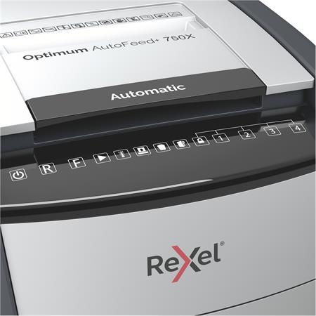 Iratmegsemmisítő, konfetti, 750 lap, REXEL, "Optimum AutoFeed+ 750X"