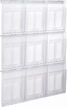 Prospektustartó, fali, A4, 9 rekeszes, HELIT "Placativ", átlátszó
