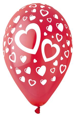 Léggömb, 30 cm, piros szívek