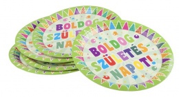 Tányér, papír, 23 cm, "Boldog születésnapot"