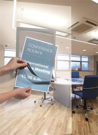 -felhasználási terület: bármilyen sima, kemény felületre, például ablakra, iratszekrényre vagy ajtóra, helyiségek megjelölésére, eligazító információk vagy ajánlatok megjelenítésére