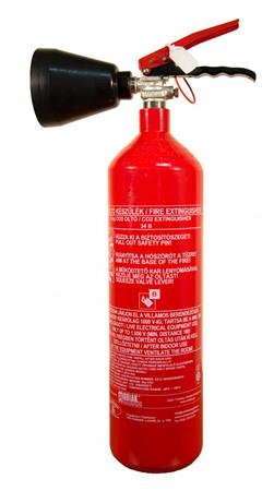 Az EU szabványnak megfelelő szén-dioxiddal oltó tűzoltó készülék. Súly: 2 kg.